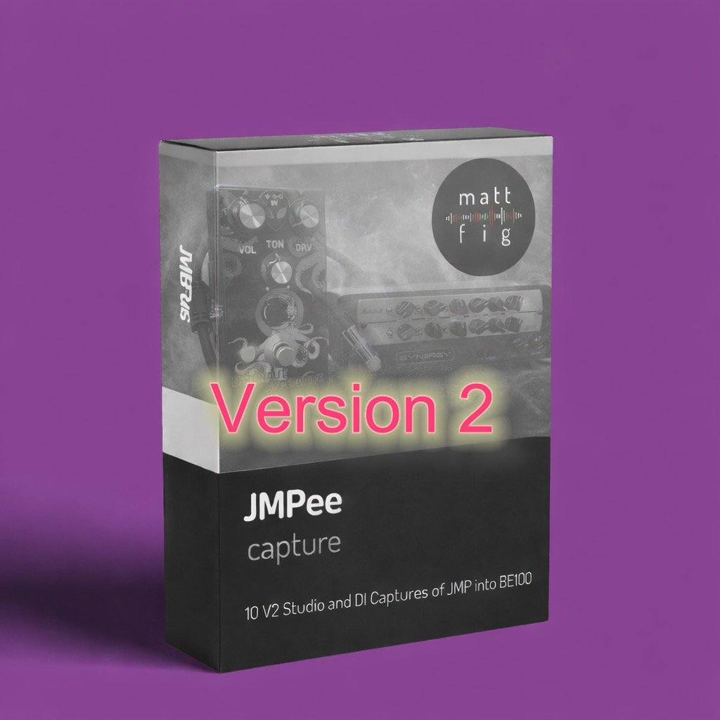 10 professionally created studio and DI captures created from a Marshall/Synergy JMP module into the power section of a Friedman BE100. You get Low Gain, Mid Gain, High Gain. This pack is straight to the point and gives you exactly what you expect in just 10 captures. As a bonus, you get Mid and High Gain boosted with Octonaut Hyperdrive. The Mattfig cab has Greenbacks and V30 plus full DI.